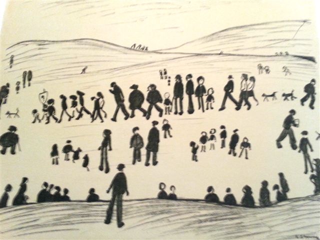 Researching the exhibition we uncovered some real treasures, including a folio of original lithographs by LS Lowry and a folio of drypoints of ‘Landscapes of War’ by William Rothenstein in 1921, studies made on the Somme in the First World War where he went as an official war artist. It is fitting, in this year that marks the centenary of the outbreak of war in 1914 that we have an opportunity to present these powerful and moving prints.